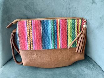 Vibrant handcrafted sarape print canvas and leather clutch with wristlet. NEW. $12Euless, TX