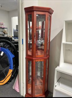 Assembled New Lighted 3-Side Glass Display Curio Corner Cabinet w/Tempered Glass Doors and Shelves$150Norwalk, CA
