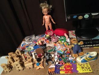 Big Lot Of Vintage Figures Plush Toys Happy Meal McDonald's Wood Train M&M's Berenstain Bears TMNT Fast Food Stencils Full List$35Chicago, IL