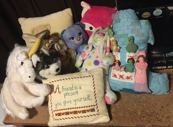 Lot Of Large Plush Animals Pillows White Unicorn Build-A-Bear Rabbit And Bear Husky Dog Rabbit Parent Old Woman In The Shoe Squishmallow$30Chicago, IL
