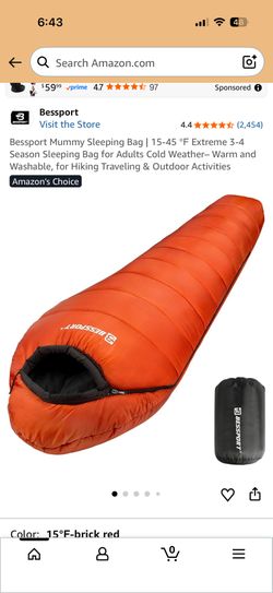 Mummy Sleeping Bag | 15-45 °F Extreme 3-4 Season Sleeping Bag for Adults Cold Weather- Warm and Washable, for Hiking Traveling & Outdoor Activities$30El Monte, CA