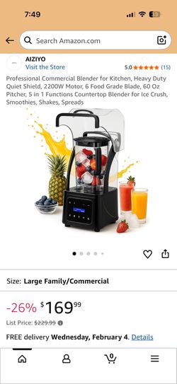 Professional Commercial Blender for Kitchen, Heavy Duty Quiet Shield, 2200W Motor, 6 Food Grade Blade, 60 Oz Pitcher, 5 in 1 Functions Countertop Blen$78El Monte, CA
