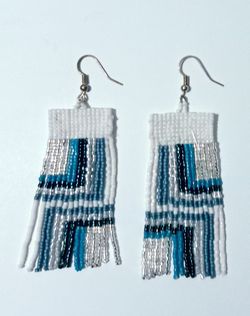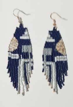 Beaded Navy And Silver Geometric Earrings $17Manchester, NH