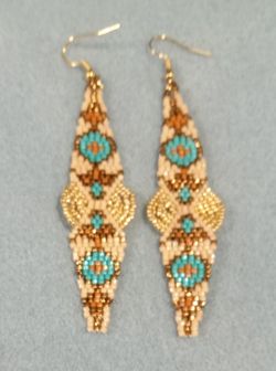 Beaded Fancy Turquoise And Beige And Gold Earrings $15Manchester, NH