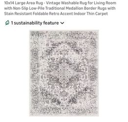 10x14 Large Area Rug - Vintage Washable Rug for Living Room with Non-Slip Low-Pile Traditional Medallion Border Rugs with Stain Resistant Foldable Ret$100San Gabriel, CA