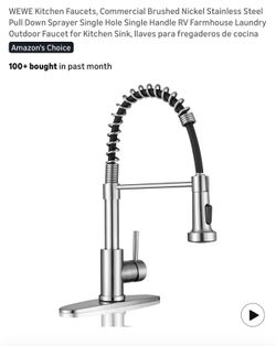 Silver, Black, Gold. WEWE Kitchen Faucets, Brushed Nickel Kitchen Faucet with Pull Down Sprayer, Industrial Spring Single Handle Stainless Steel Kitch$38San Gabriel, CA
