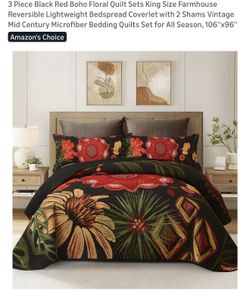 3 Piece Black Red Boho Floral Quilt Sets King Size Farmhouse Reversible Lightweight Bedspread Coverlet with 2 Shams Vintage Mid Century Microfiber Bed$40San Gabriel, CA