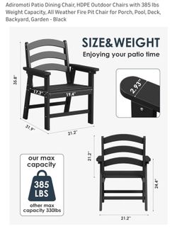 Adiromoti Patio Dining Chair, HDPE Outdoor Chairs with 385 lbs Weight Capacity, All Weather Fire Pit Chair for Porch, Pool, Deck, Backyard, Garden - B$50San Gabriel, CA