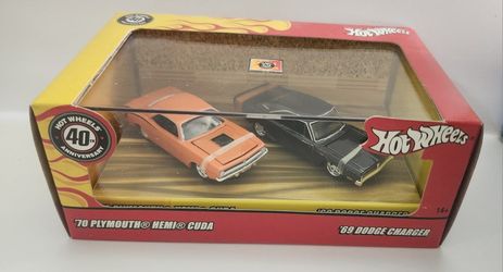 Hot Wheels 100% 40th Anniversary 2 Car Set Boulevard Burners 70 Plymouth Hemi Cuda & 69 Dodge Charger $30Indio, CA