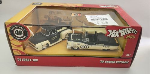 Hot Wheels 100% 40th Anniversary 2 Car Set Retro Racing 56 Ford Crown Victoria & 56 Ford F-100 $30Indio, CA