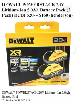 Dewalt 20v 2-Pack , XR Powerstack 5 Ah DCBP520 New In Unopened Box-2$160Henderson, NV