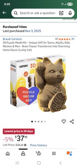 3D Puzzle Model Kit – Unique Gift for Teens, Adults, Kids, Women & Men - Brain Teaser Transforms Into Charming Home Decor (Lucky Cat$30Burgaw, NC