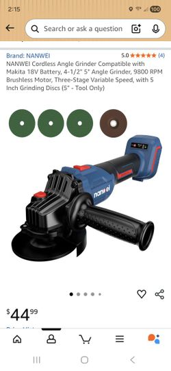 NANWEI Cordless Angle Grinder Compatible with Makita 18V Battery, 4-1/2" 5" Angle Grinder, 9800 RPM Brushless Motor, Three-Stage Variable Speed, with $35Burgaw, NC