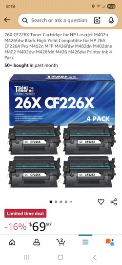 26X CF226X Toner Cartridge for HP Laserjet M402n M426fdw Black High Yield Compatible for HP$50Burgaw, NC