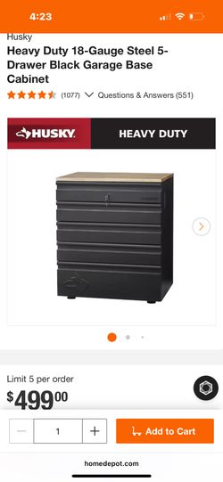 Husky Heavy Duty 18-Gauge Steel 5-Drawer Black Garage Base Cabinet$350Scottsdale, AZ