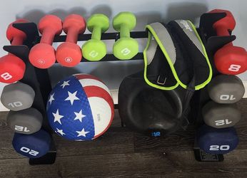 Dumbbells, kettlebells, medicine ball & rack$24York, PA