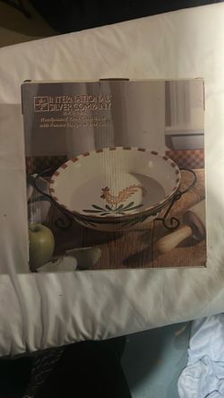 International Silver Company Hand painted Terra Cotta Baker With Rooster Design On Iron Rack$15Livonia, MI