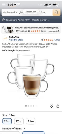 Expresso Double Wall Glass Cups (4 Pack 12 oz)$25San Antonio, TX
