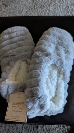 Women's Ribbed Faux Fur Cozy Pull-On Slipper Socks with Grippers Gray M/L Brand New with Tags Never Worn $10Oro Valley, AZ