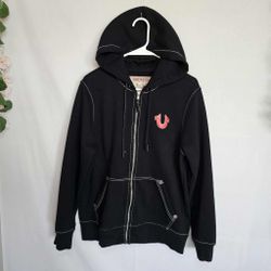 True Religion Hoodie Black Full Zip World Tour Red Logo Mens Medium M $95Crowley, TX