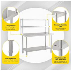 Stainless Steel Work Table with Overshelves, 47.2" W x 23.6" D x 31.5" H, Heavy Duty Commercial Kitchen Prep Table for Restaurant, Home, Garage, Wareh$75Lithonia, GA