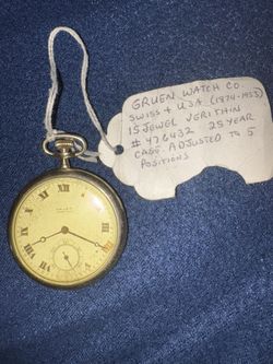 VINTAGE GRUEN VERI-THIN PRECISION Pocket Watch 15-Jewel Adjusted 25Yr Gold Filled $375Cleveland, OH