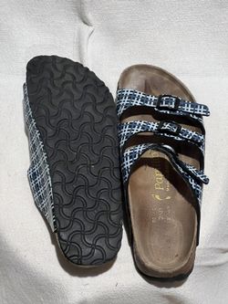 Birkenstock “papillio” - Black background, blue and white plaid$60Oceanside, CA