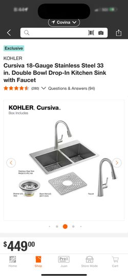 SoldNEW Kohler 33” Stainless Steel Double Bowl Kitchen Sink w/ Faucet – $270$250Fontana, CA