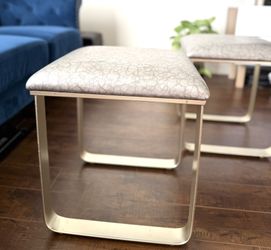 2 sets of small gray faux leather vanity ottoman with gold metal legs.$140West Los Angeles, CA