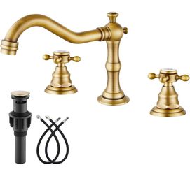 Bathroom Faucet 3 Hole 8 Inch Widespread Bathroom Sink Faucet 2 Cross Handles Vintage Lavatory Vanity Mixer Tap with Pop Up Drain, HOT C$30Sugar Land, TX