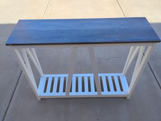 Stylish two-tone console table with a dark wood top and white geomet$85Henderson, NV