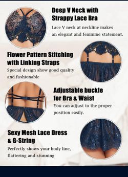 Lingerie Set Floral Lace Nightwear Women Deep V Neck Slip NightDress with Thong 2 Piece$15Whittier, CA