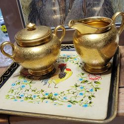 Golden Glazed Cream And Suger Dishes By Wheeling$50Anacortes, WA