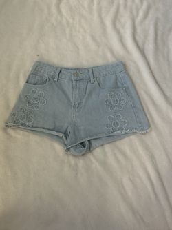 Women’s Light Blue Denim Jean Shorts With Embroidery Flowers Size 5$4Nuevo, CA