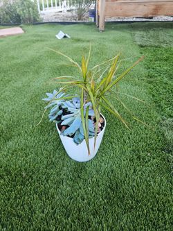 Ghost Plant With Dragon Tree In White Ceramic Vase$12Santa Ana, CA