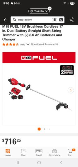 M18 FUEL 18V Brushless Cordless 17 in. Dual Battery Straight Shaft String Trimmer with (2) 8.0 Ah Batteries and Charger$625Aurora, IL