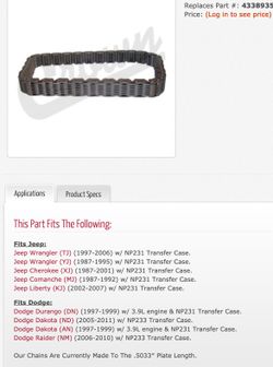 TRANSFER CASE CHAIN (31 LINKS) CROWN AUTOMOTIVE$100Hesperia, CA