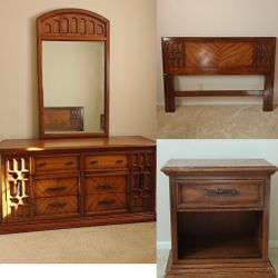 Moving sale! Vintage Mid-century solid wood bedroom set Dresser with mirror, night stand, headboard$750Monterey Park, CA