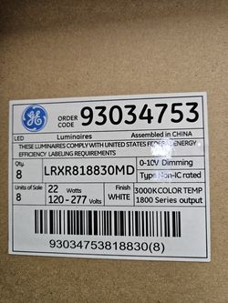 ​GE LED Luminaires 8-Pack 22W 120-277V 3000K 1800 Series LRXR818830MD White$45Oak Park, MI