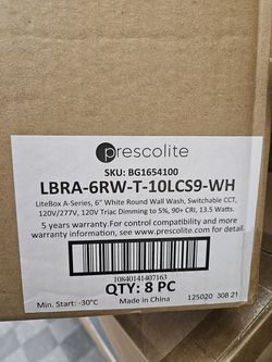 Prescolite LiteBox LBRA-6RW-T-10LCS9-WH 6" White LED Round Wall Wash - 8 Pack$30Oak Park, MI