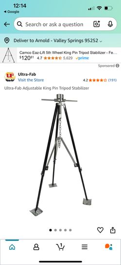 ULTRA-FAB 33" TO 62" ADJUSTABLE KING PIN TRIPOD STABILIZER 1200 LBS 19-950600$99Valley Springs, CA