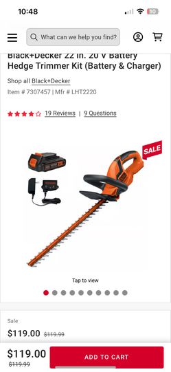 Black+Decker 22 in. 20 V Battery Hedge Trimmer Kit (Battery & Charger)$40Valley Springs, CA