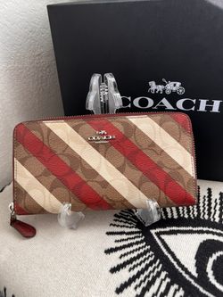 COACH Signature Coated Canvas Diagonal Stripe Large Corner Zip Wallet$45Bakersfield, CA