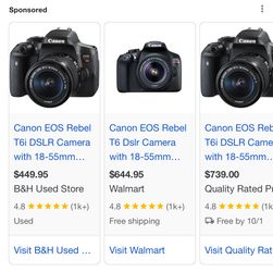 Canon EOS Rebel T6i DSLR Camera – 24.2MP – WiFi – Excellent Condition + Accessories$300Raleigh, NC