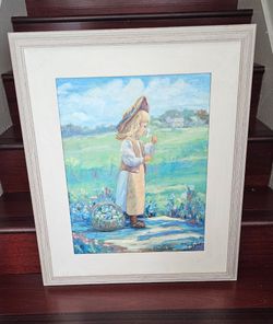 Framed & Signed Original Acrylic Painting Little Girl Picking Flowers Prairie Countryside Peaceful$75Irvine, CA