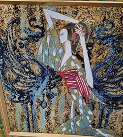 Modern Asian Woman Geisha Framed Painting Textured Wall Art Home Decor 34x34$45Irvine, CA