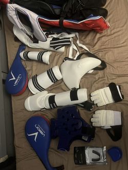 Taekwondo Sparing Gear With Set Of Shin Instep And Arm Guards And Sparing Pads For Punching Practice And The Bag $60Canyon Country, CA
