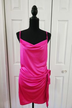 Vibrant Pink Draped Mini Dress with Tie-Side Detail (Worn Once, Size Large)$25San Marcos, TX