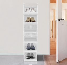 6-Tier Drop Front Shoe Box, foldable Plastic Shoe Box with Clear Door,$25Garland, TX