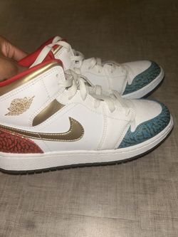 Air Jordan 1 Mid SE “White / Metallic Gold” with Elephant Print.$55Newport News, VA